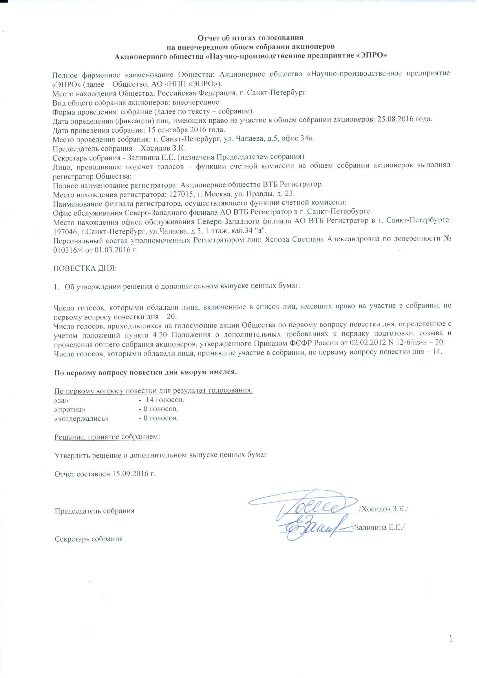 15.09.2016г. Отчет о собрании